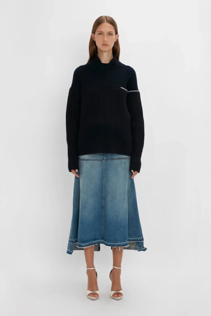 - High neckline complete with ribbed hemline